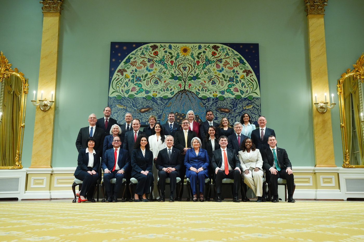 Elle a noté que le cabinet était fortement réduit et que M. Carney avait exclu plusieurs responsabilités des titres des ministères, dont le statut de la femme, le travail, les relations Couronne-Autochtones et les langues officielles.