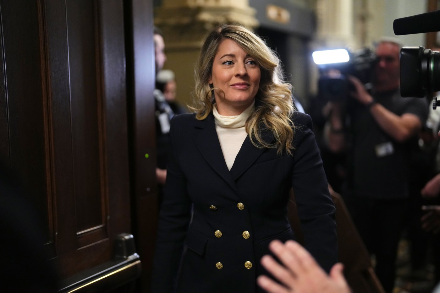 La ministre des Affaires étrangères, Mélanie Joly, est l'une des candidates pressenties à la direction du parti. Questionnée mercredi à savoir si elle se retirerait le temps de la course, Mme Joly a indiqué que cela fait partie de sa réflexion. Elle a cependant refusé de s'avancer, si bien qu'à la troisième relance elle a signalé clairement qu'elle continuerait son mutisme. «Je n'ai pas répondu à cette question-là», a-t-elle envoyé.