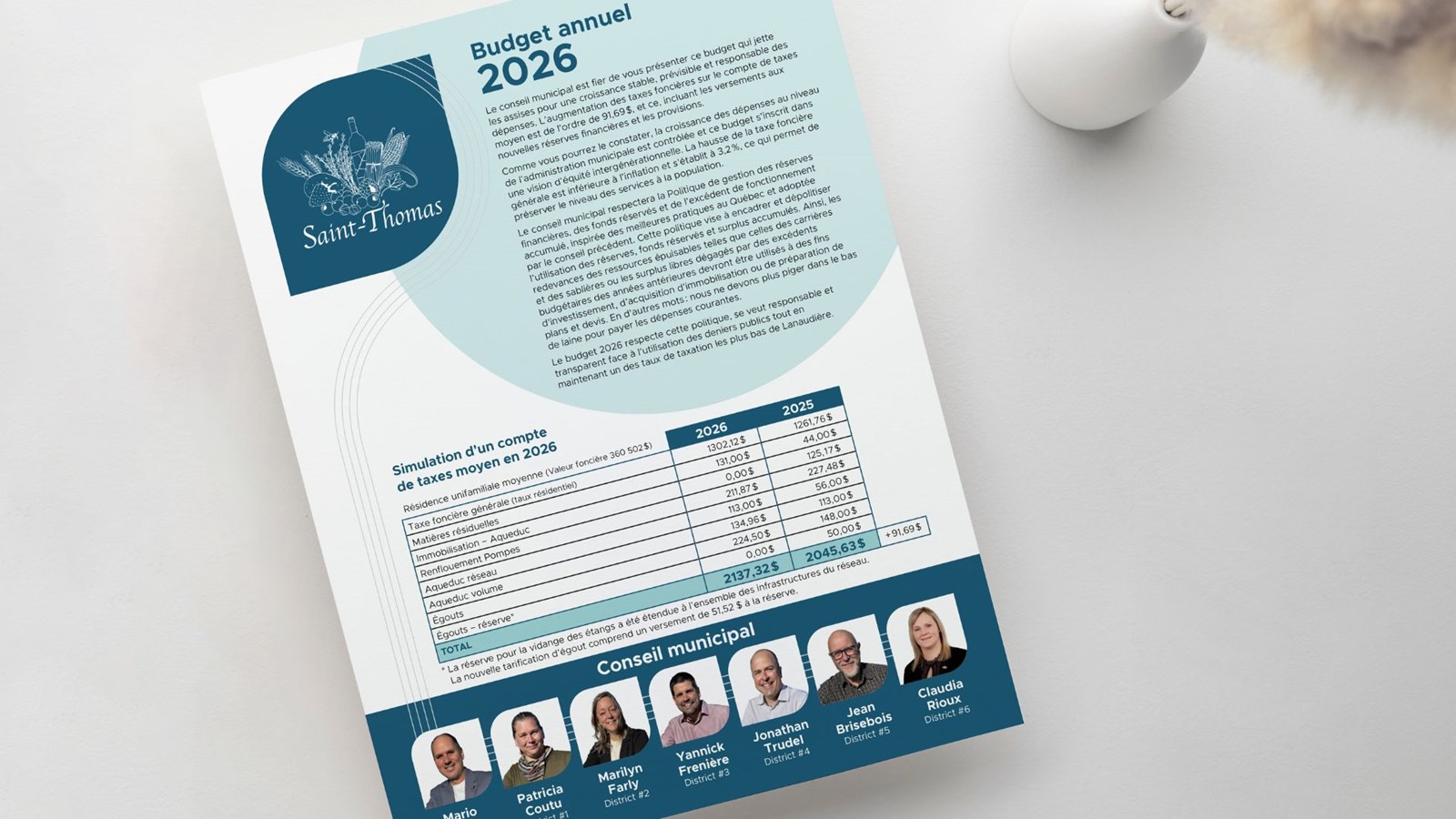 Le budget municipal 2026 et le programme triennal d’immobilisations (PTI) pour les trois prochaines années,  de la municipalité de Saint-Thomas a été adopté le 11 décembre dernier, lors du conseil.