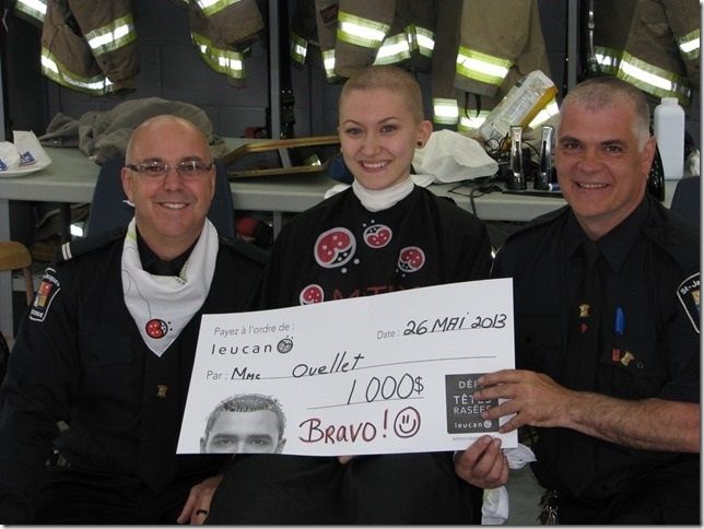 Les pompiers de Saint-Jacques sont heureux de remettre une somme de 10 747,16 $ à Leucan Laurentides-Lanaudière, résultat du cinquième Défi têtes rasées tenu le 26 mai dernier à la caserne de Saint-Jacques. Les pompiers ont réussi à dépasser leur objectif grâce à la collaboration de plusieurs bénévoles, commanditaires et ses 46 courageux partenaires venus se faire raser la tête pour la cause.