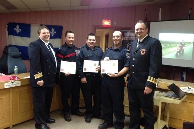 L’association et le service incendie a profité de cette occasion pour remercier cinq pompiers pour leur implication (Messieurs Lussier, Vachon, Tessier, Gadoury et Deslauriers) qui ont quitté l’emploi en 2013.